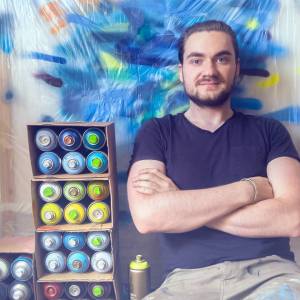 Réponse : Actuellement mon projet principal est de vivre de mes tableaux. D’exposer en galerie, de vendre à des collectionneurs et également de réaliser des fresques murales sur commandes.